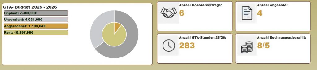 in den letzten Wochen sind wieder zahlreiche Updates im Programm FABelF erfolgt, die wir Ihnen an dieser Stelle etwas näher beschreiben möchten. Am auffälligsten ist sicher das Update im Menü Zusammenfassung des Schuljahres. Hier wurden vier weitere Angaben zum aktuellen Bearbeitungsstand im Schuljahr hinzugefügt. Sie können nun auf einen Blick sehen, wie viele Honorarverträge eingetragen wurden, wie viele Angebote und GTA-Stunden für das Schuljahr geplant sind. Ebenfalls wird Ihnen die Anzahl der eingegebenen Rechnungen angezeigt sowie, wie viele dieser Rechnungen bereits bezahlt wurden.